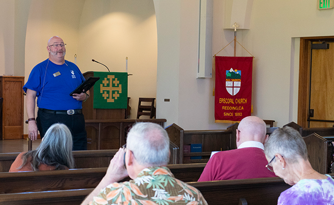 Many participants from all corners of the diocese joined our Missioner for Disaster Resilience, Mark G. Dibelka, at the “Great ShakeOut” earthquake preparation and response workshop during pre-convention on Thursday, October 20, 2022. The pews at All Saints’, Redding, were alive with the scribbling of notes, sharing of experiences, laughter, and even yoga as some of our nimbler congregants slipped under the pews for an earthquake drill.