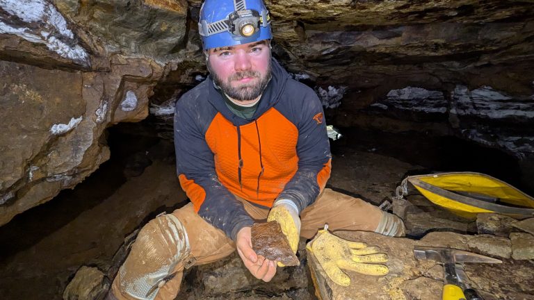 | | Photo description: 2025 awardee, Ryan Johnston from University of Akron for his work investigating the relationship between maze cave development and an ancient glacial lake. Photo courtesy of the Karst Waters Institute | | | | | |