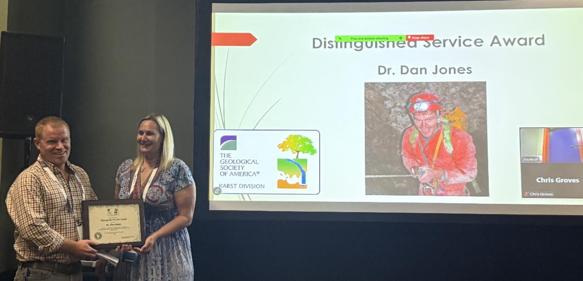 Dr. Dan Jones received the Service Award, and Jones Lab alumnus, Zoë Havlena, received the Early Career Award from the Karst Division. Karst was well represented at the convention with the Karst Division having 60 presentations, four oral session, three poster sessions, and a jam-packed awards lunch.