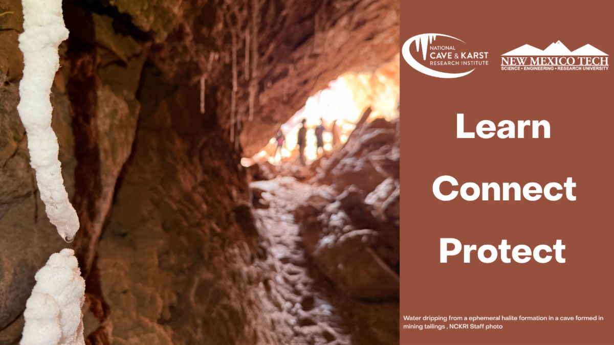 | | | | | Photo description: 1. NCKRI Academic Director Dr. Dan Jones receiving the Distinguished Service Award from the GSA Karst Division 2. Mackenzie Best and Melina Karavousanos from the Jones Geomicrobiology Lab during the poster session. 3. Cave and Karst Scientist gather around the NCKRI booth 4. NCKRI Professional Intern Matthew Kaspar presents their poster. | | | The National Cave and Karst Institute is a research center of New Mexico Tech. NCKRI was created in partnership with the National Park Service, State of New Mexico, and the City of Carlsbad to be a nexus of research, stewardship, information and outreach for caves and karst while fostering interdisciplinary collaborations. Our mission is to promote and facilitate cave and karst research, education and sustainability. | | | | |