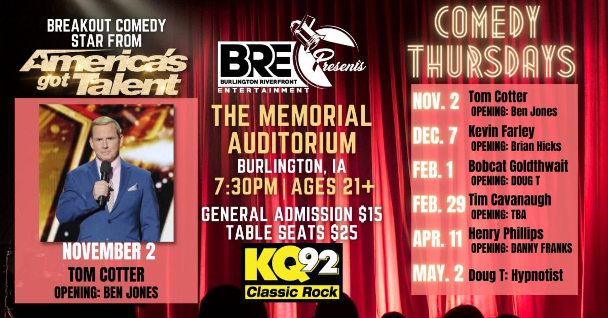 Comedy Thursday continues November 2 with breakout star comedian from America's Got Talent, TOM COTTER!