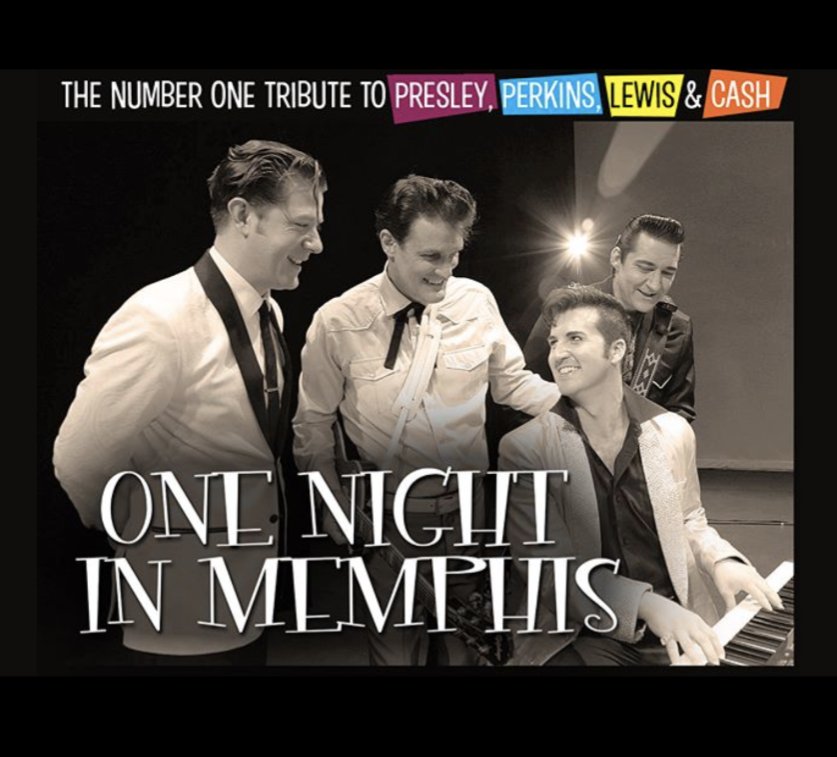 One Night in Memphis is a concert tribute to Carl Perkins, Johnny Cash, Jerry Lee Lewis, and Elvis Presley.