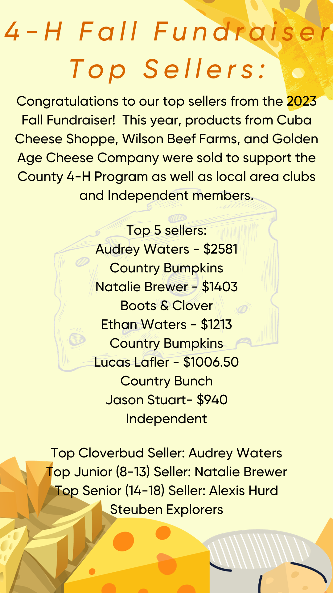 Over $47,000 gross sales of cheese and beef sticks were sold by