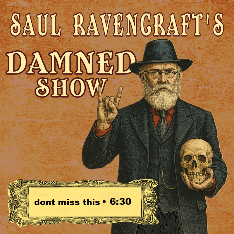 You are summoned to Episode 3 of Saul Ravencraft's Damned Show—a live, immersive experience. This variety spectacle is your gateway to the strange, the surreal, and what lurks in the shadows.