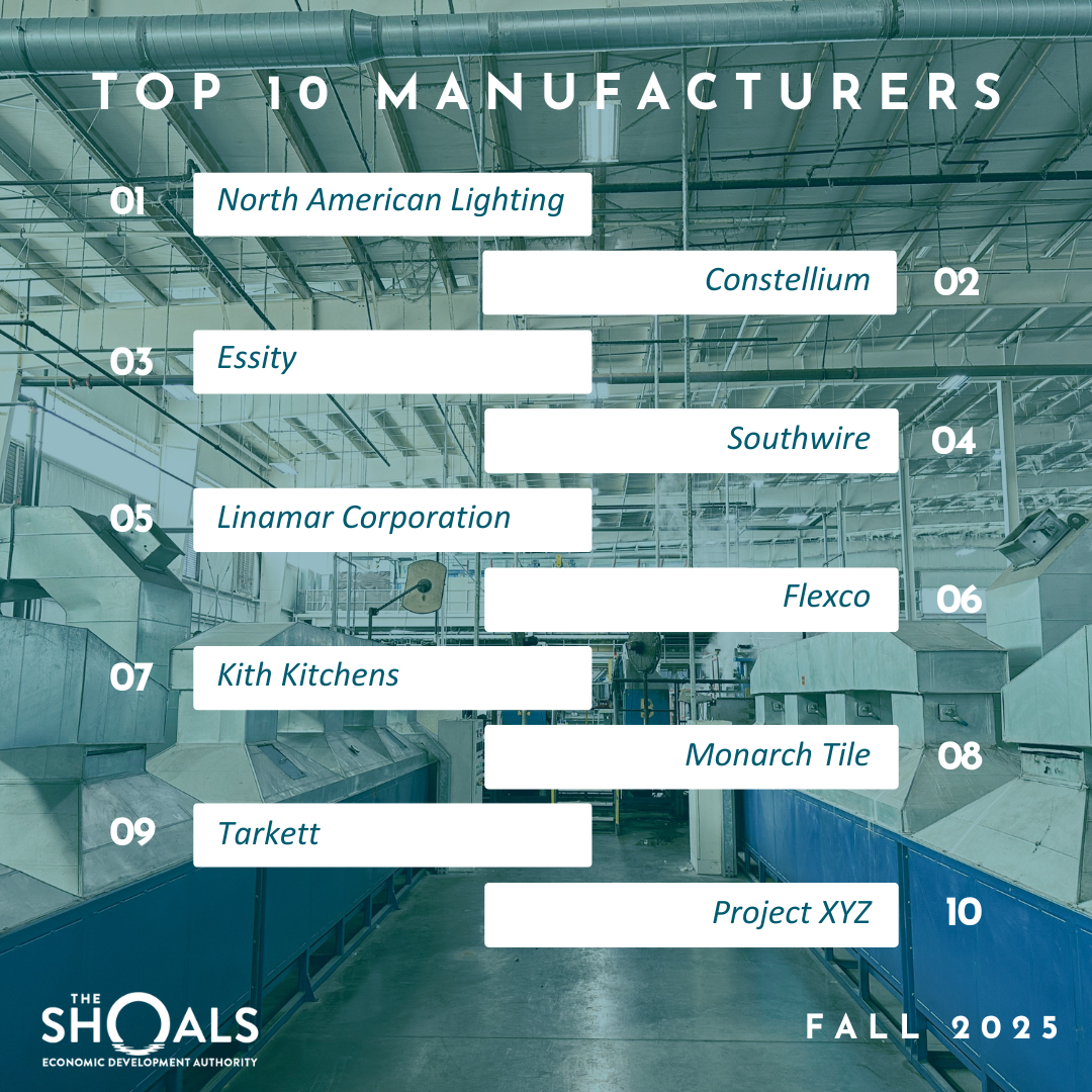 When it comes to economic growth in The Shoals, the numbers tell a compelling story. Our top 10 manufacturers are not only providing thousands of local jobs—they’re driving innovation and shaping the future of their industries.