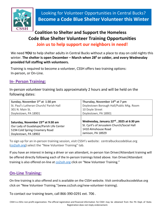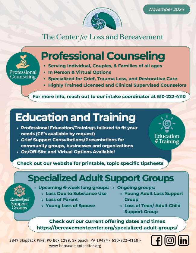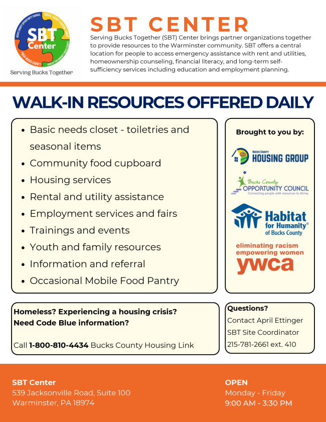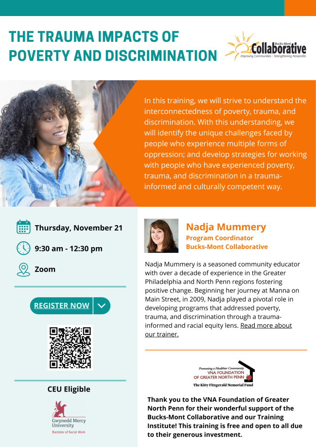Please continue to keep us informed of what's happening with you in Bucks and Montgomery Counties. The information here comes from you, with links to our website for more complete information and resources. Send your events and updates to Kristyn: kristyn@bucksmontcollab.org. Thank you!