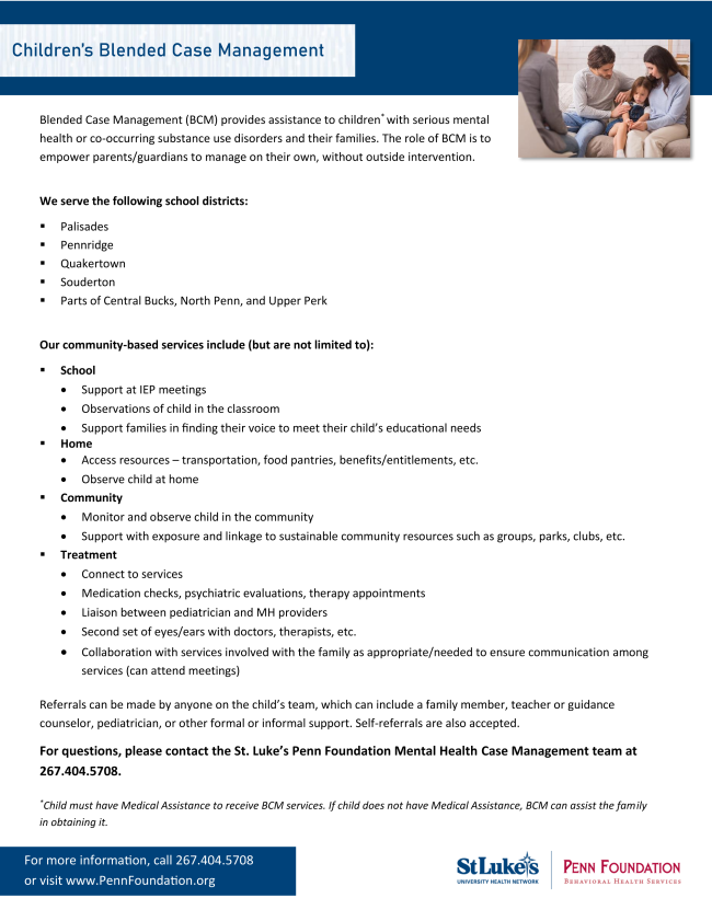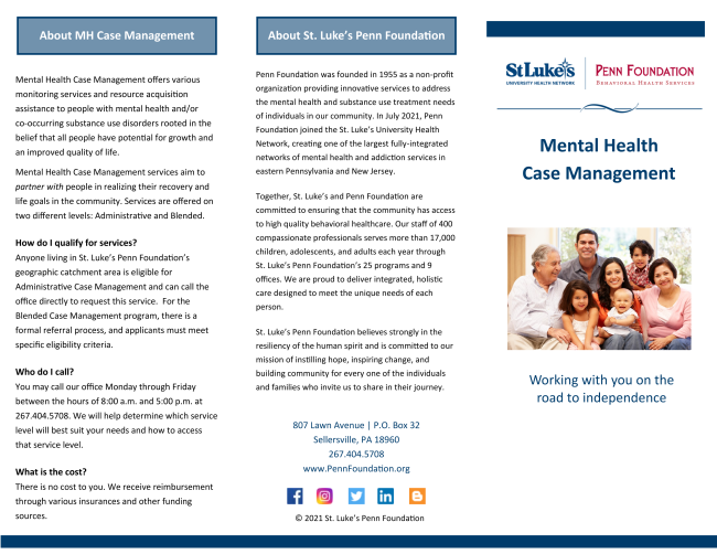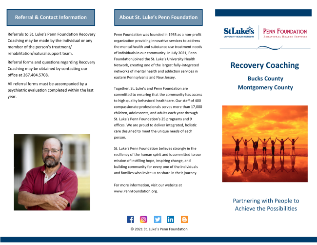 Learn more about St. Luke's Penn Foundation’s Recovery Coaching and Blended Case Management Services! | |