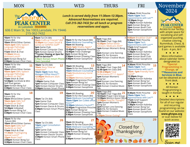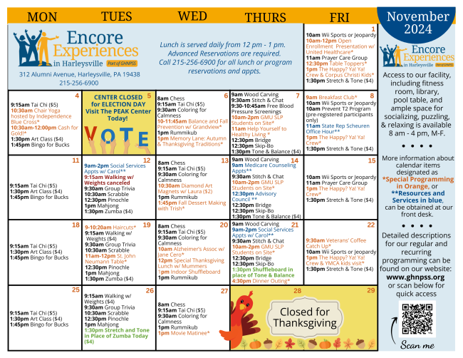 TransNet provides free, door to door transportation to your closest Senior Center. To learn more or to make a reservation on TransNet, please call Encore at 215-256-6900 or PEAK at 215-362-7432.