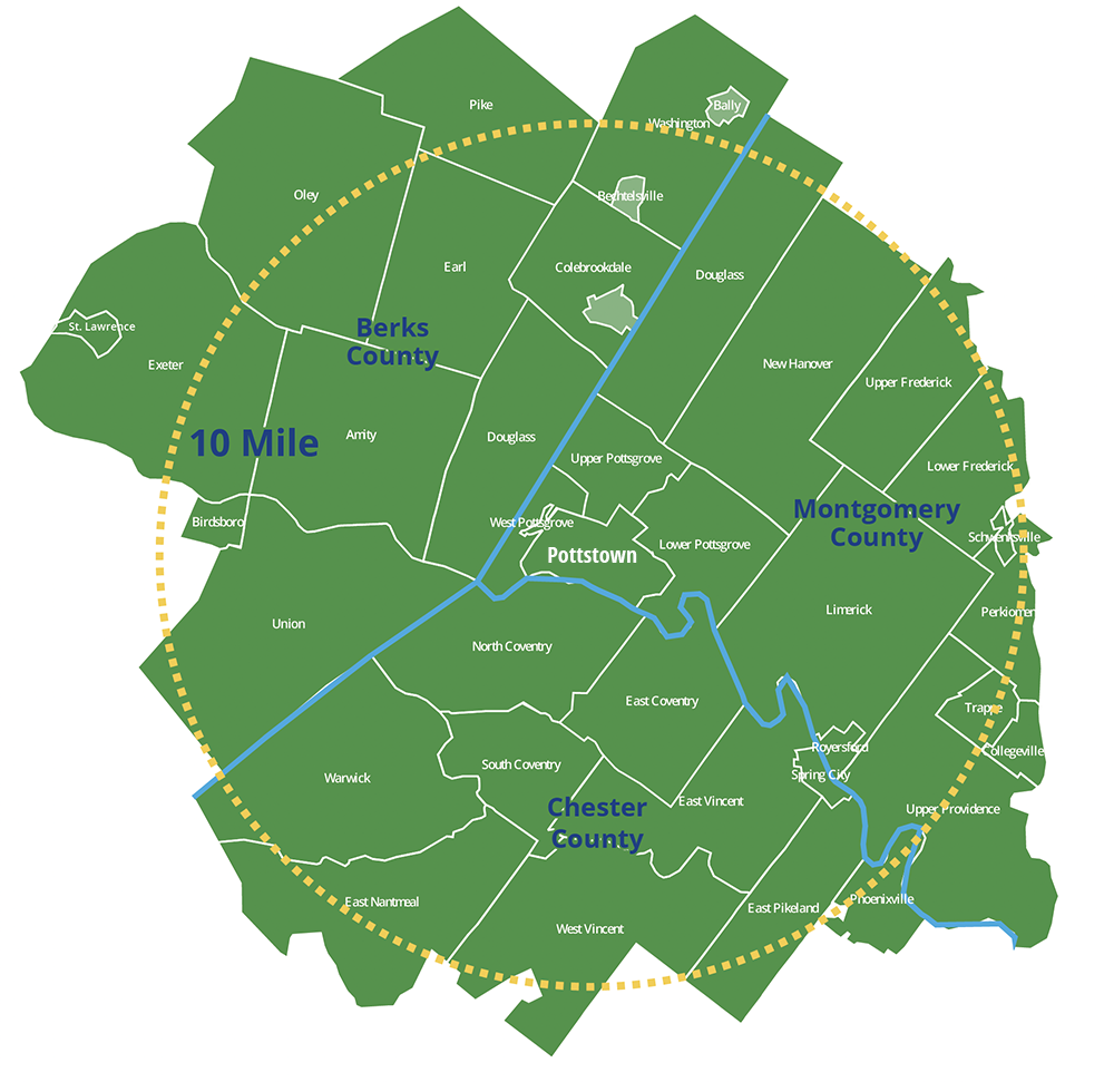 Community foundations rely on public support and focus on improving the quality of life within a specific geographic area. In their case, that means serving residents within a ten-mile radius of Pottstown, including communities like Birdsboro, Boyertown, Coventry, Gilbertsville, Limerick, Royersford, and many others.