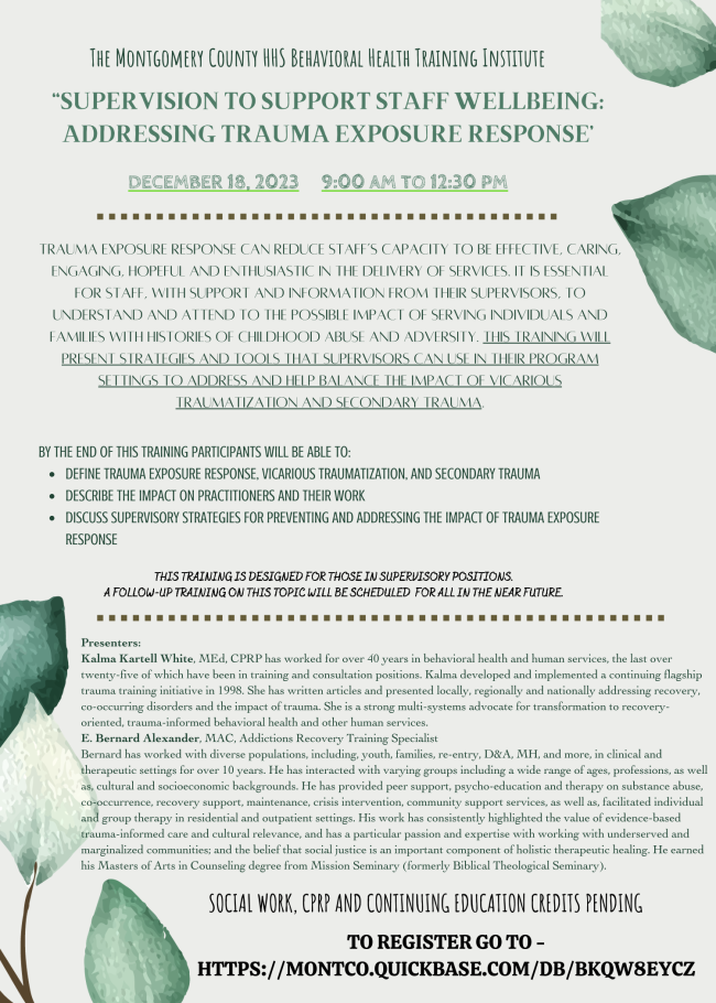 Coming Up! Trauma 102: Basic Skills of Trauma-Informed Care
