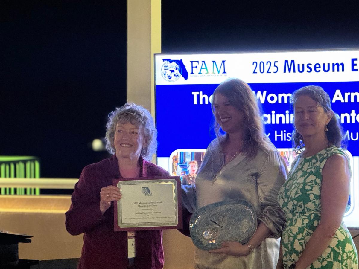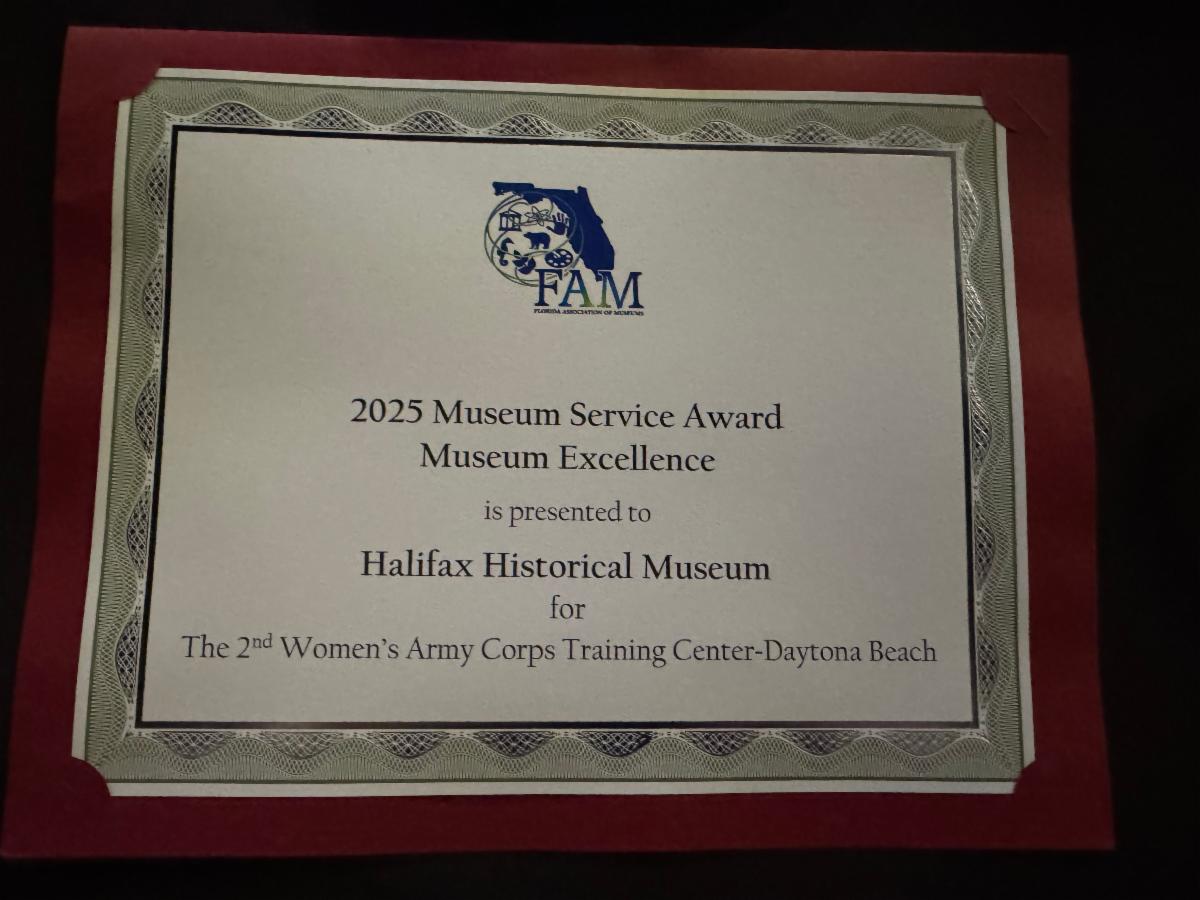 This year’s award recognizes our outstanding exhibit, “The 2nd WAAC/WAC Training Center – Daytona Beach.” The exhibit celebrated the women who trained and served right here in Daytona Beach as part of the Women’s Army Auxiliary Corps and later the Women’s Army Corps during World War II.