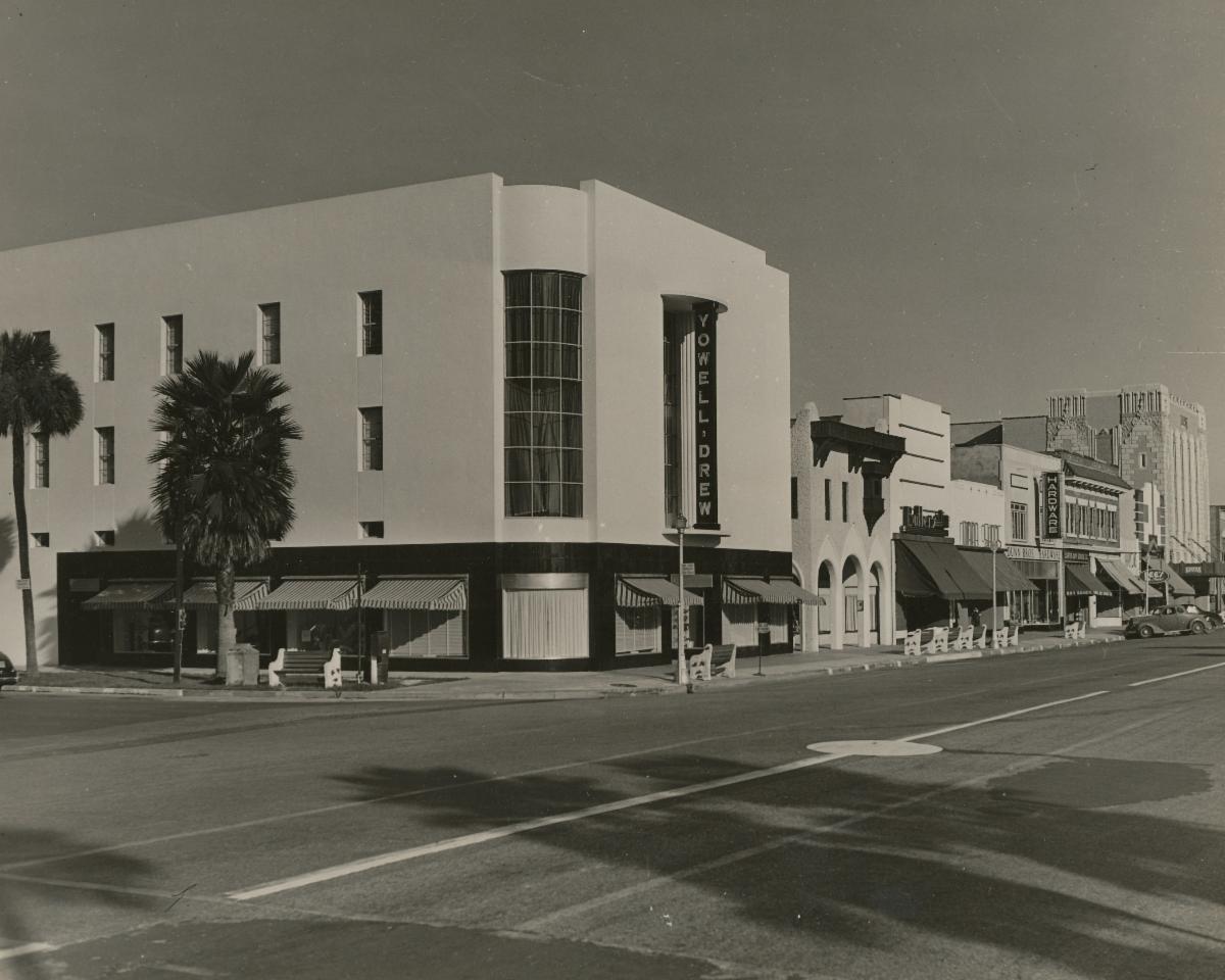 Seven years later, the Yowell-Drew Company bought the business, remodeling to remove the porch and cut an arch through to an adjoining building. The annex building was sold in 1940 when Yowell-Drew extended the main building in a complete remodeling of both the interior and the exterior.