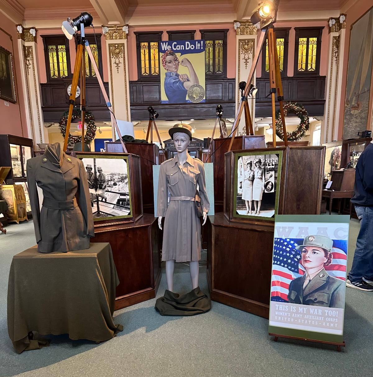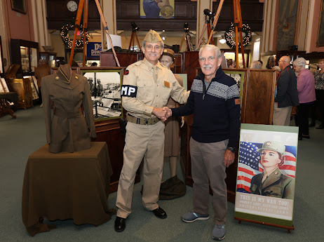 The exhibit featured Hannah Schultze, a World War II historian and reenactor, who appeared in an original training officer’s uniform. Several of our board members joined her in period attire, including our own “Rosie the Riveter,” bringing the story vividly to life for visitors. The exhibit’s debut on Pearl Harbor Day was a fitting and emotional tribute to the women who served and to the enduring spirit of the Greatest Generation.