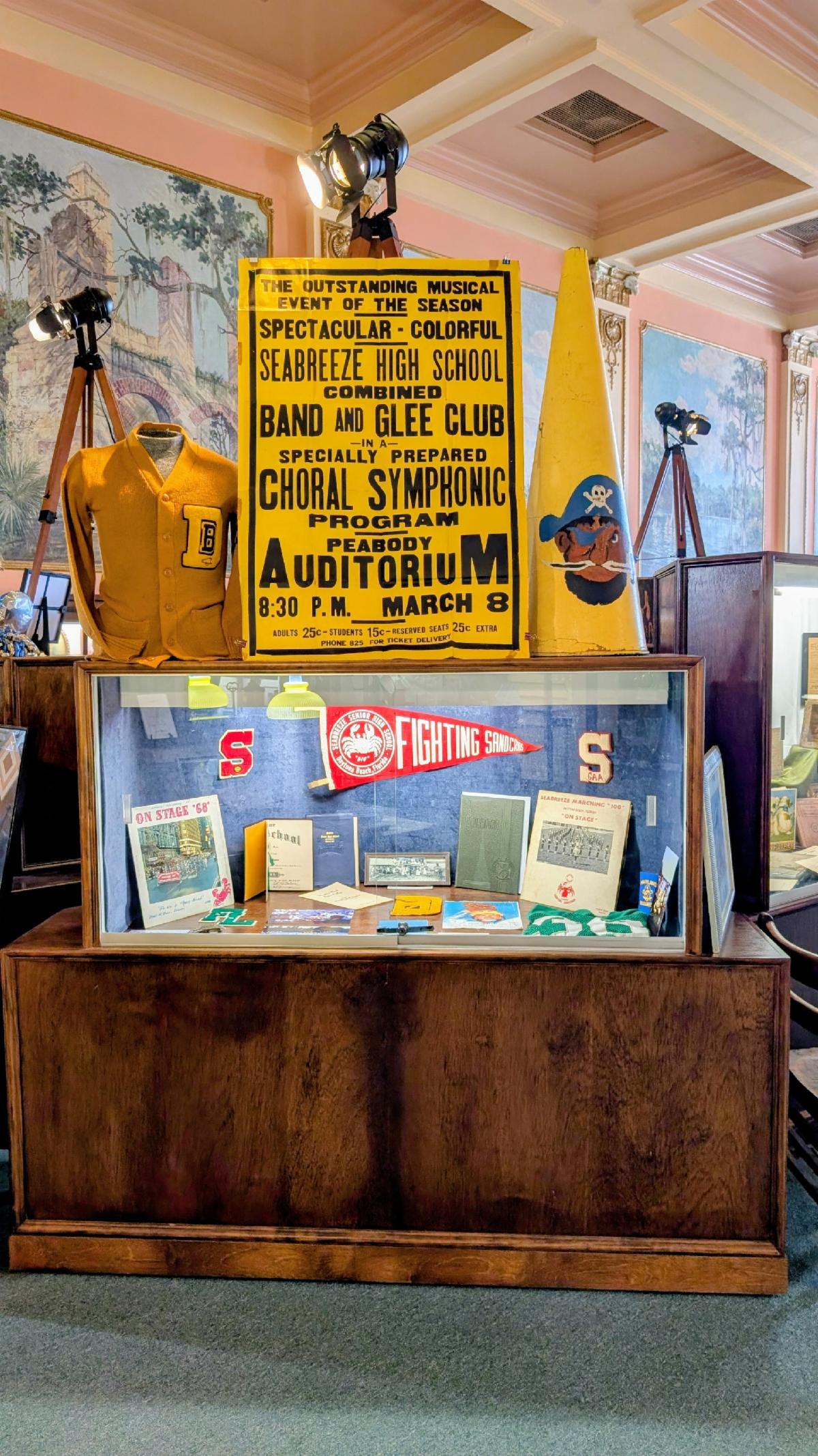 This exhibit celebrates the spirited school culture of Daytona Beach showcasing memorabilia from Seabreeze, Mainland, Father Lopez, Spruce Creek, and Atlantic High Schools. Bethune Cookman, Daytona State, Embry Riddle College and Universities. Mascot Mania, historic yearbooks, pep rallies, photos and local stories. The exhibit will feature Rivalry Wee, quote walls, and memory card submissions.