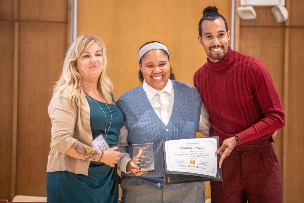 | | The late Michael Elonge was honored with a posthumous Impact Award for his transformative work advancing digital opportunities across Maryland. Michael's daughter, Eposi Elonge, accepted the award on his behalf, sharing her hope that his legacy will continue through the educators, partnerships, and communities he inspired. | | | | Building Digital Opportunities | | Since launch, UME Marylanders Online has reached tens of thousands of residents across the state through a digital inclusion framework grounded in learner-centered curriculum design, community-informed resources, culturally responsive training, and strategic partnership development. | | |