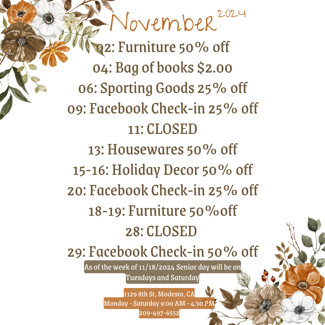 Starting to shop for Christmas? Be sure to stop by our Thrift Store at 1129 8th Street… Manager Alex Bohnet has lots of great bargains just waiting for you!