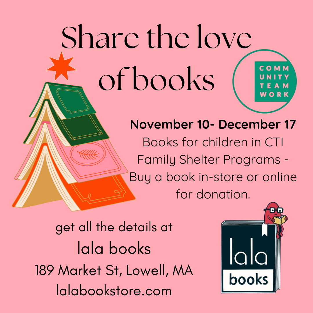 Lala books on Market Street in Lowell is again partnering with Community Teamwork to ensure that the children in our shelter programs have new books this holiday season.