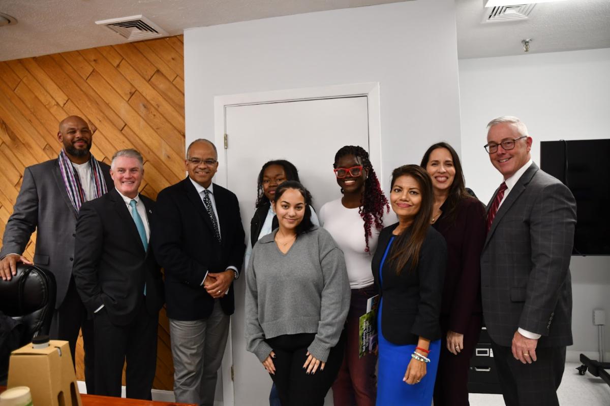 On Thursday afternoon, Executive Office of Health and Human Services (EOHHS) Secretary Kiame Mahaniah and Glenn Daly, Director of the EOHHS Office of Children, Youth and Families, visited Youth Services in recognition of National Youth Homeless Month, and the incredible work our team is doing to support youth and young adults across Lowell and the surrounding communities.