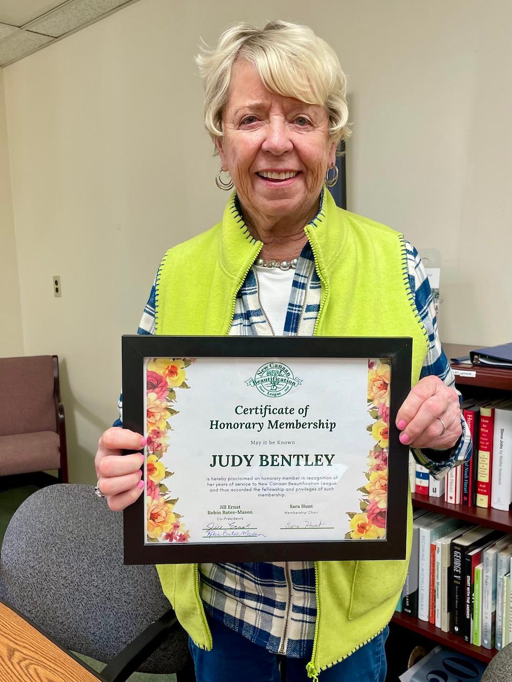 Over the years, two members have made extraordinary contributions to our group and town. Judy Bentley and Jane Campbell are being recognized with honorary memberships. We wish Jane bountiful blossoms with her move to Charleston. Thank you and congratulations!