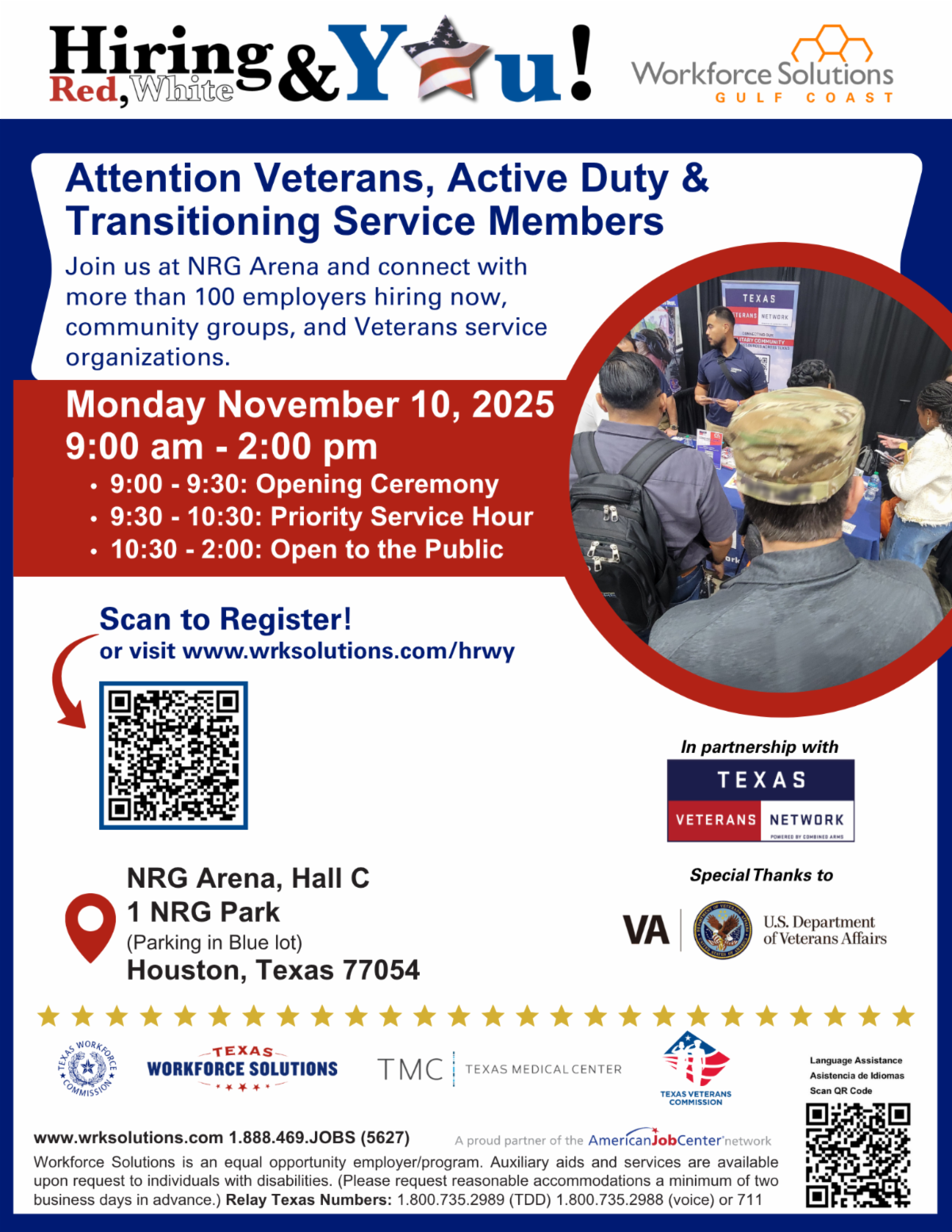 Held in partnership with the Michael E. DeBakey VA Medical Center, the City of Houston Office of Veterans Affairs, and dozens of nonprofit and civic partners, this year’s event connected veterans with housing assistance, employment opportunities, legal aid, medical care, food, clothing, and more. Volunteers from the Houston Astros Foundation’s Volunteer Corps and Career Gear Greater Houston were also on hand to offer guidance, gear, and gratitude.