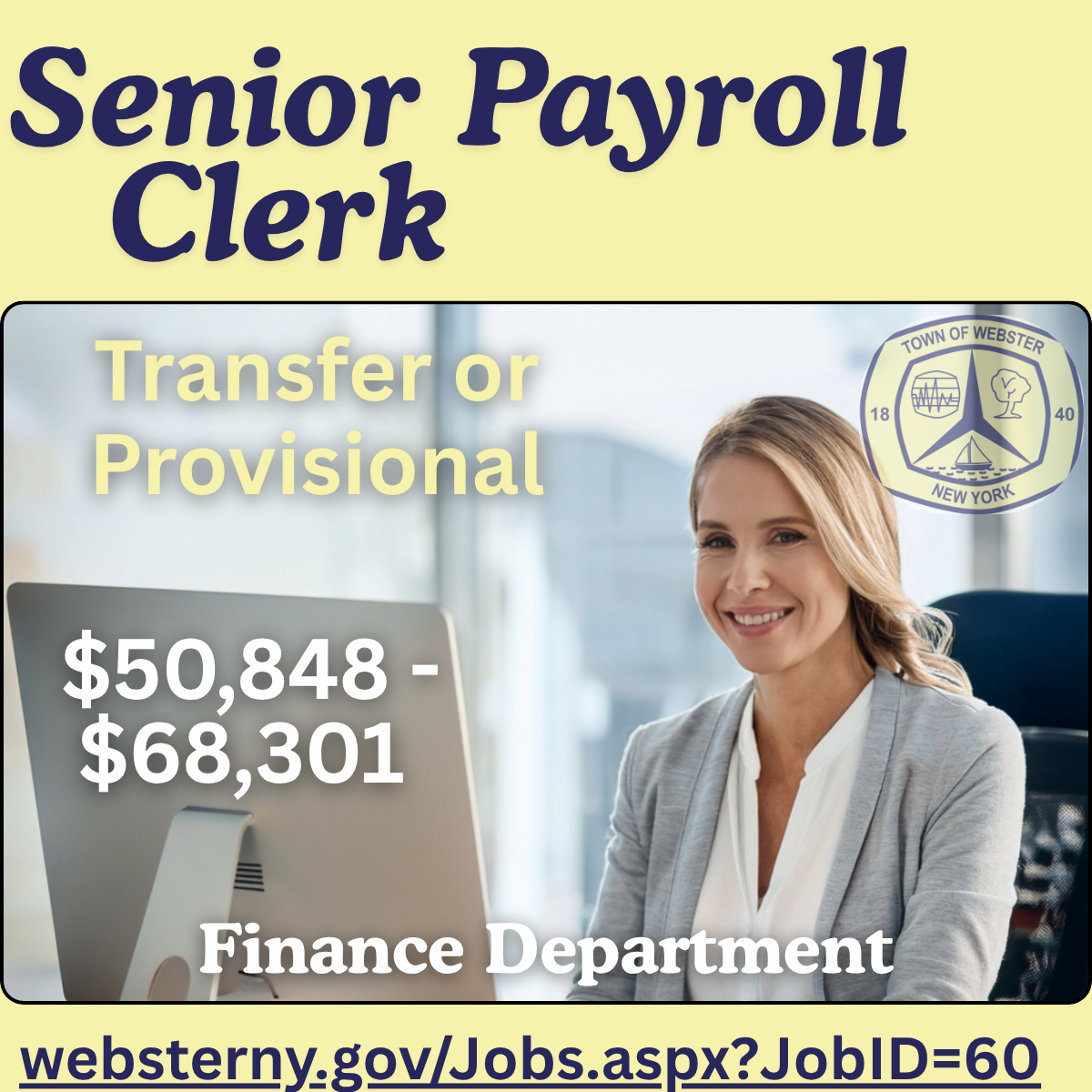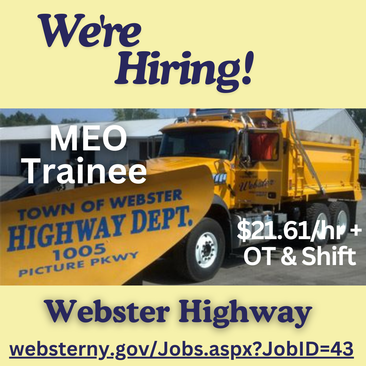 The Town of Webster is hiring. Please visit our website to learn more about all of our open positions, review qualifications, and apply today.