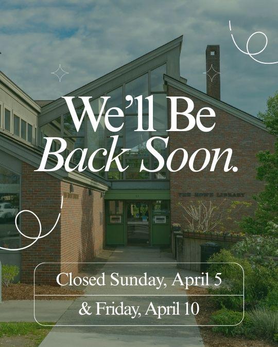 The library will also be closed on Friday, April 10, to prepare for the Spring Soirée.