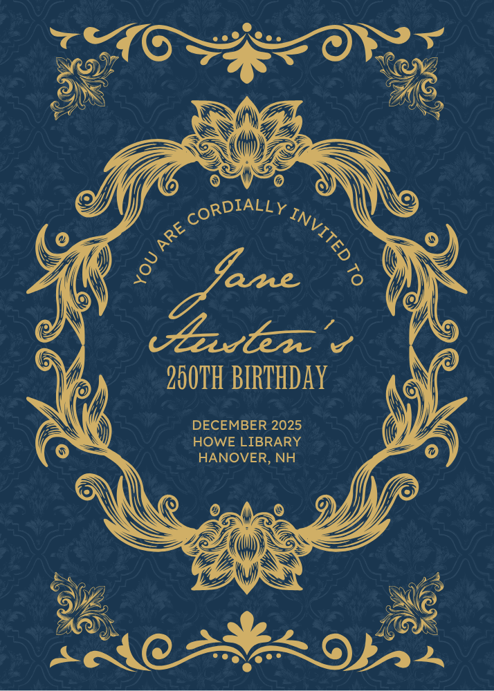 Happy Birthday Jane Austen! Our 250th programs begin tomorrow, Tuesday, December 2 with Dancing with Jane Austen at 6:30 p.m. (Now online only due to Tuesday's weather forecast).