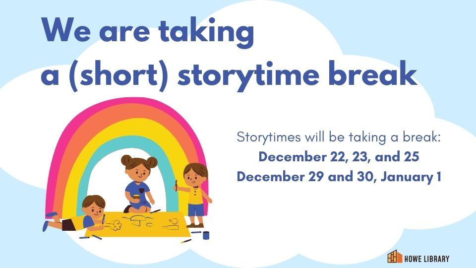 | | | Plan Ahead: Storytimes Taking a (Short) Break | Storytimes will be taking a break from December 22 to January 1. We will start a new storytime schedule in January. Stay tuned for more details. | | | In the Ledyard Gallery: Mirage of the Ocean by Josh Trudell | |