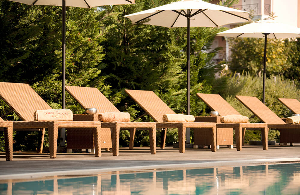 It’s strictly adults only at this boutique hotel, which puts you within easy reach of Corfu Town’s sights. The décor here is on the stylish side, so the pool has a contemporary feel, as well as an adjoining whirlpool bath.