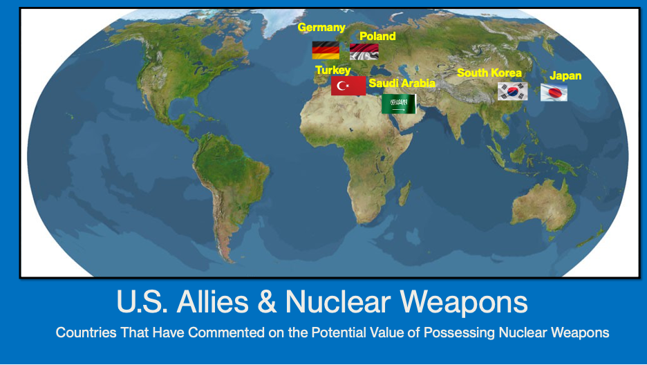 In this week’s newsletter, we feature an infographic and commentary that identifies U.S. allies that have discussed the possibility of possessing nuclear weapons and the implications this has for the global nonproliferation policy and the expansion of nuclear energy. We spotlight a new report from the Carnegie Endowment for International Peace, produced in collaboration with Harvard University’s Belfer Center and the Nuclear Threat initiative. It argues the United States needs to revise its global nonproliferation strategy and provides policy recommendations to prevent the further proliferation of nuclear weapons worldwide. Finally, we highlight key nuclear technology, security, and geopolitical developments, reports, and analyses.