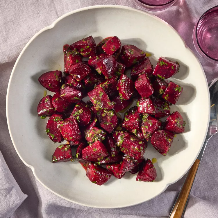 This recipe highlights the natural sweetness of roasted beets by combining it with a tangy, herbal dressing. This quick and easy recipe is great as a side with a protein, such as roasted chicken, or as a topping to a salad. If you've never been a fan of beets before, give this recipe a try!