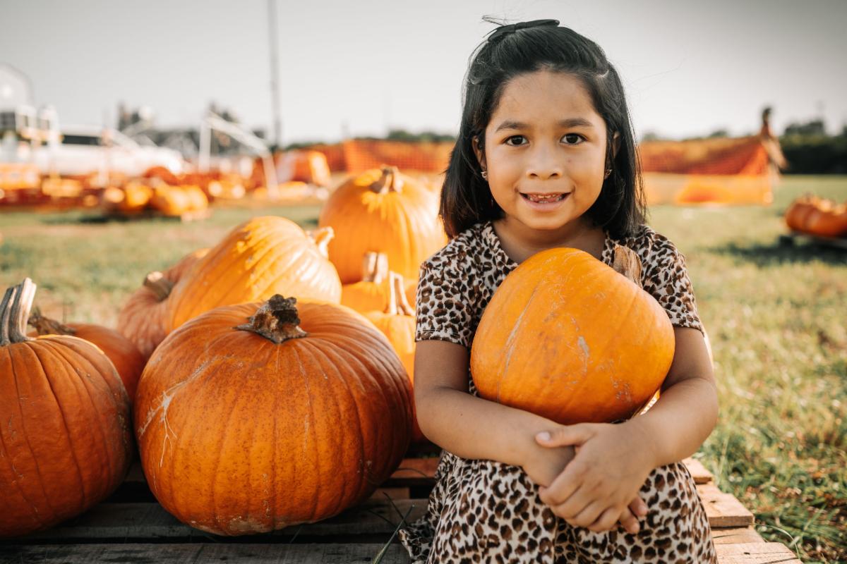 Start by finding the “pumpkin. This could be a small toy pumpkin, an orange piece of paper, or even a pair of balled up orange socks. Use your imagination!