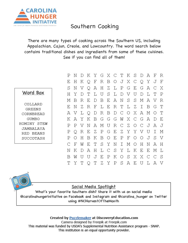 | | https://carolinahungerinitiative.org/wp-content/uploads/2020/07/Collards.pdf | | SNAP provides monetary assistance to supplement the food budget of households that meet the financial and resource requirements. | | | | |