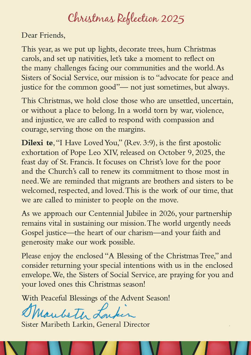As we eagerly anticipate the momentous occasion of the 100th Anniversary Jubilee of the Sisters of Social Service in 2026, this year’s Donor Appreciation Mass and Dinner was of particular significance. On a warm autumn evening, we gathered a vibrant community of Sisters, donors, and special guests, united in our shared mission and commitment to social justice. Together, we expressed heartfelt gratitude to our supporters, acknowledging their vital role in furthering our efforts. This gathering also served as a beautiful tribute to the enduring legacy of George Dunning and the George A. E. Dunning Foundation, whose extraordinary generosity has profoundly impacted the lives of the SSS and of those we serve. As we celebrate this rich history, we are filled with optimism for the future, inspired by the unwavering support of our donors, and invigorated in our mission to promote peace and justice in our communities.