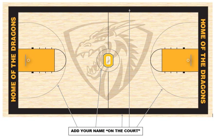 Let’s do this, Dragons! If you 💛 Dragon basketball, volleyball, rallies, assemblies, Mass, and community traditions like the Crab Feed and the Transforming Lives Dinner, then get your name ON THE COURT!
