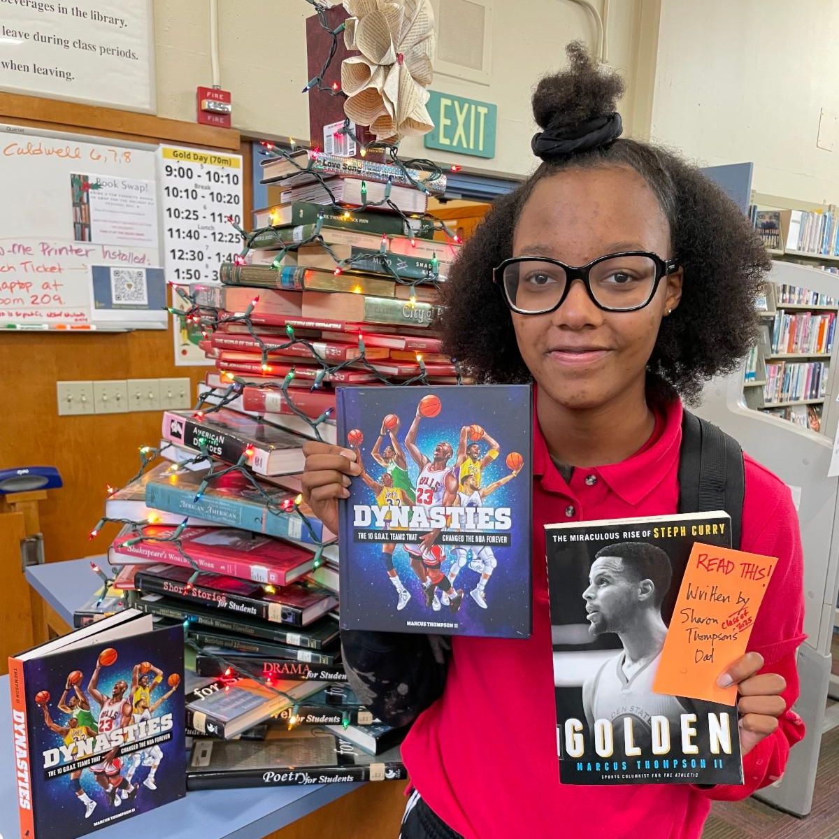 Dragon parent Marcus Thompson II, father of Sharon Thompson '25, recently donated copies of his book, “Dynasties: 10 G.O.A.T. Teams that Changed the NBA Forever,” to the O’Dowd library. We are grateful for his gift, and for the inspiring inscription he left for readers! Thompson is also the author of another Dragon library favorite: “The Miraculous Rise of Steph Curry.”
