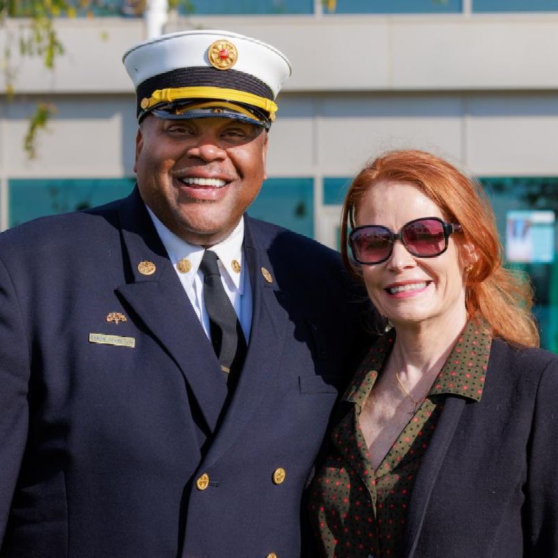 President Walsh with Damon Covington ’91 at the Oakland Fire Chief Installation | |