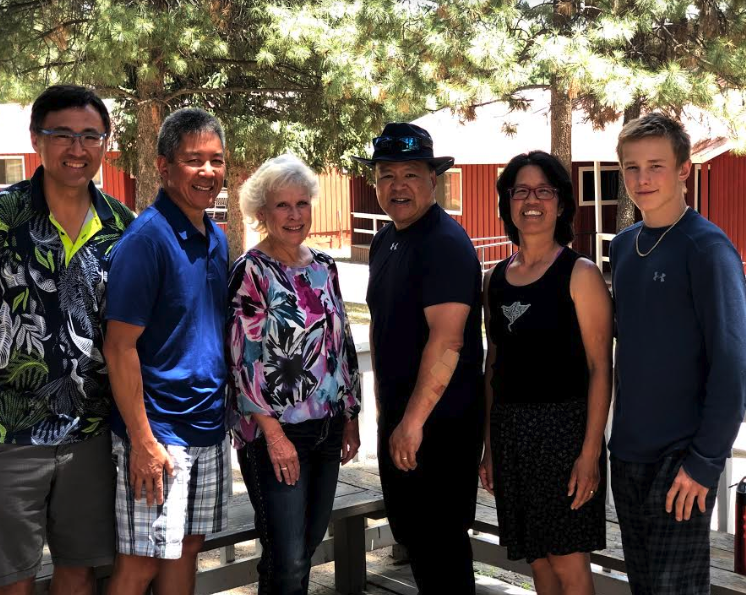 Twenty-four friends and family members of the Tom family gathered at the Majestic Dude Ranch in Mancos, Colorado to celebrate Leonard Tom's 85th birthday on July 8th. Six of those gathered were also bonded as O'Dowd graduates or future graduates. Pictured here are Stephen Woo '78, Stuart Tom '79, Theresa Rush Woo '81, Daryl Tom '81, Erika Lee Deru '86, and Henry Littell '22.