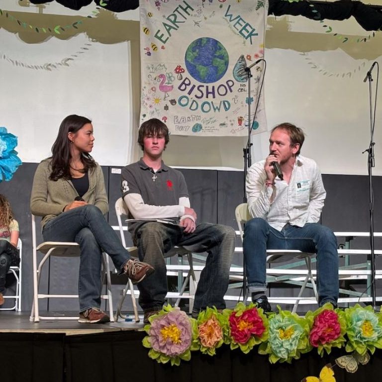 As part of our Earth Week Assembly, O’Dowd’s student Eco Leaders welcomed Chris LeBoa ’15, an environmental health researcher at UC Berkeley. Chris spoke about his time at O’Dowd and the mentorship he received in the Living Lab, which inspired him to earn his PhD in environmental health.