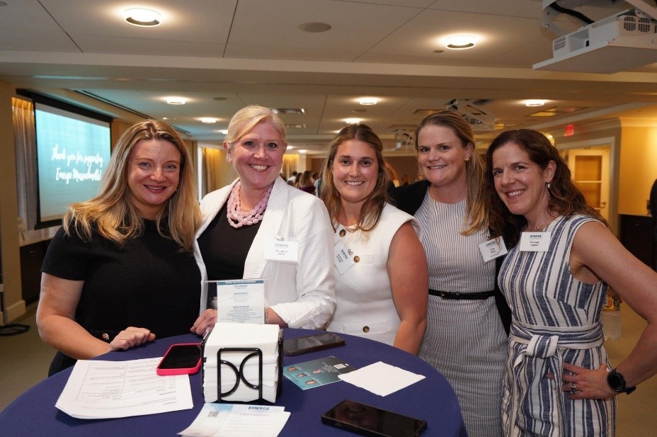 Photo Credit: Emerge Massachusetts. From left to right: Megan Collins (MNA); Meaghan Hohl (Seven Letter); Jamison O’Neill (O’Neill and Associates); Erin Riley (O’Neill and Associates); Lindsay Toghill (O’Neill and Associates). | |