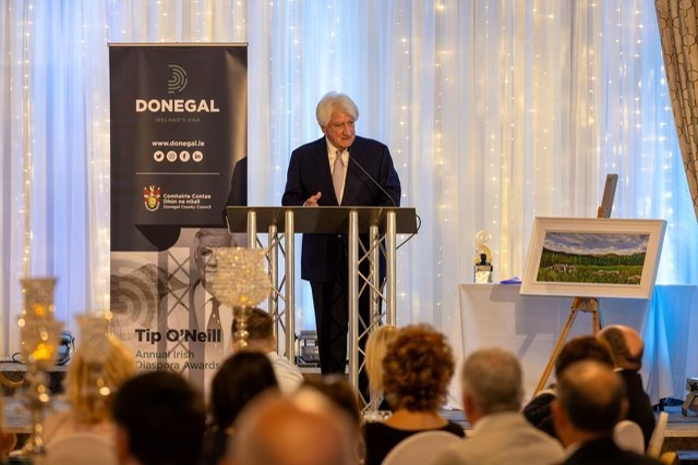 The 2024 Annual Tip O’Neill Awards Dinner was held on September 27 at the Inishowen Gateway Hotel in Buncrana, Ireland. The Award celebrates the lifelong contributions of the Irish Diaspora to Ireland and world. This year, the Donegal County Council honored three individuals for their outstanding contributions to society, culture, health care, arts, and law.