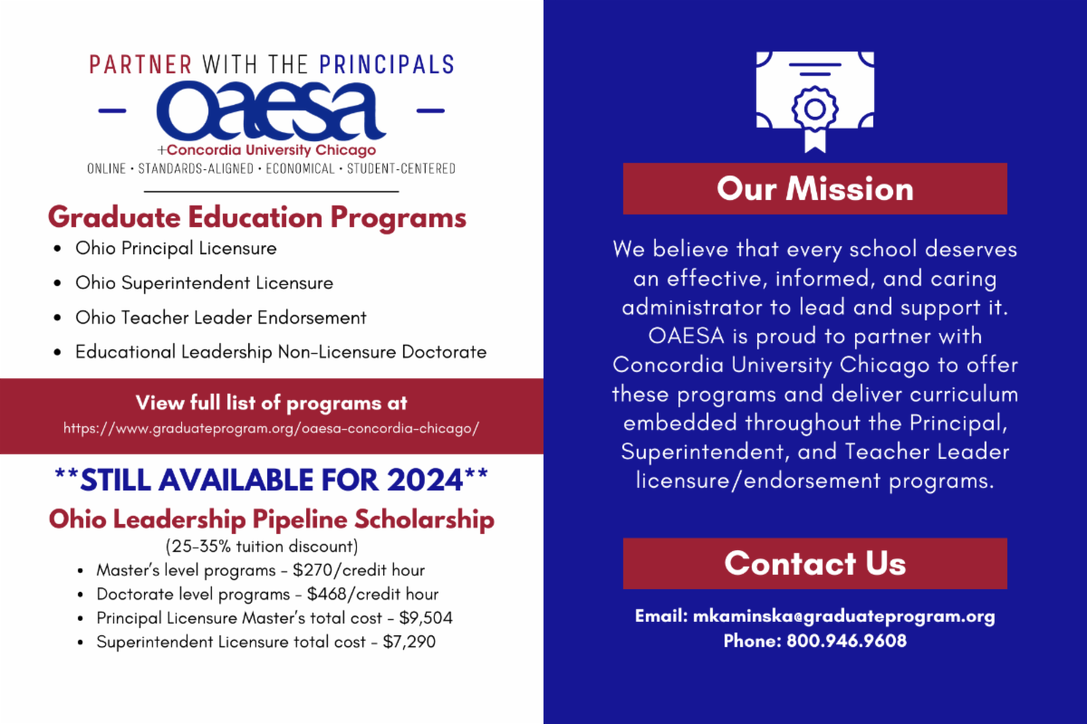 Whether you are a Dean of Students, Assistant Principal, or Administrative Intern, the "Second-in-Command" position is a diverse role with unique challenges. Join OAESA via Zoom to explore the essential practices for school leadership and make meaningful connections with colleagues across the state in similar roles.