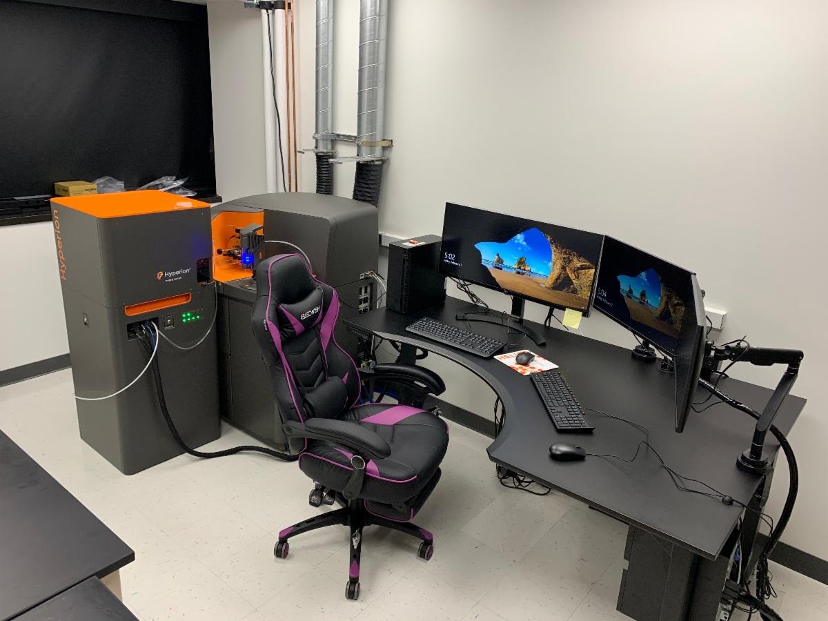 2. What does the equipment do, and how does that make it valuable for research? This equipment allows us to identify different types of immune cells using specially labeled antibodies that can detect up to 40 different markers. The Helios component analyzes cells in suspension by mass spectrometry and the Hyperion component analyzes cells in tissue by microscopy. This allows us to detect changes in immune cell populations in different disease states or in response to different treatments.