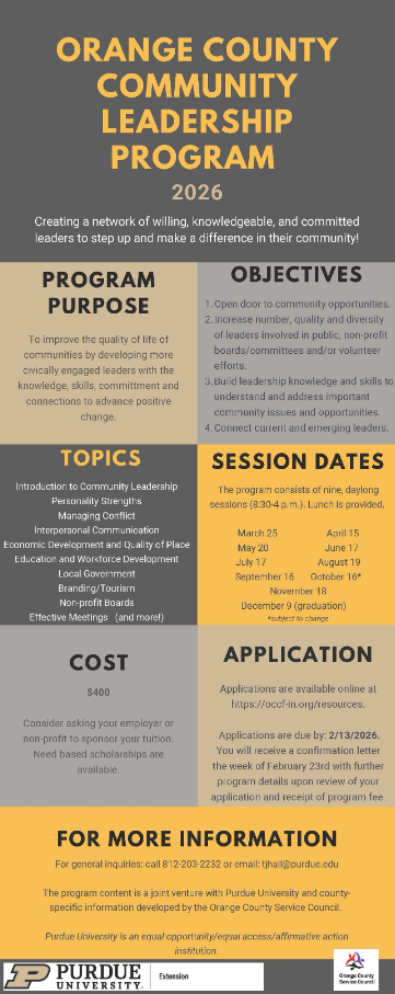 Award winners will be announced and honored at the OCEDP Annual Dinner on March 5, 2026, at the Pete Dye Pavilion in French Lick.