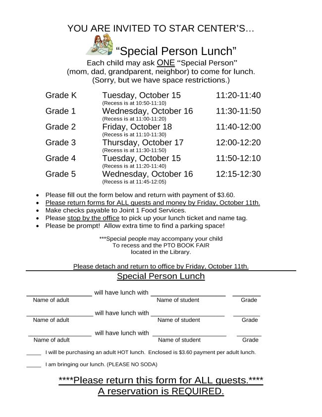 October 15-18th--PTO Special Person Lunch and PTO Book Fair