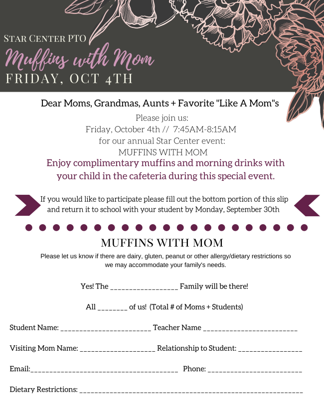 The PTO Book Fair will be open during our Special Person Lunch 10:45-12:30pm (Tuesday-Thursday) and in the mornings from 8:00-8:30am.