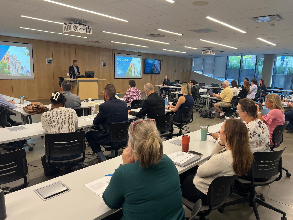 In late July, the City’s BPS Working Group convened for its second meeting, bringing together a diverse group of stakeholders from across sectors. The session began with a detailed analysis of local building data presented by Amanda Webb from the University of Cincinnati, helping attendees understand how Cincinnati’s buildings currently perform and where the most impactful improvements can be made. The discussion then turned to the four key components of a potential BPS policy: scope, metric, targets, and timeline.