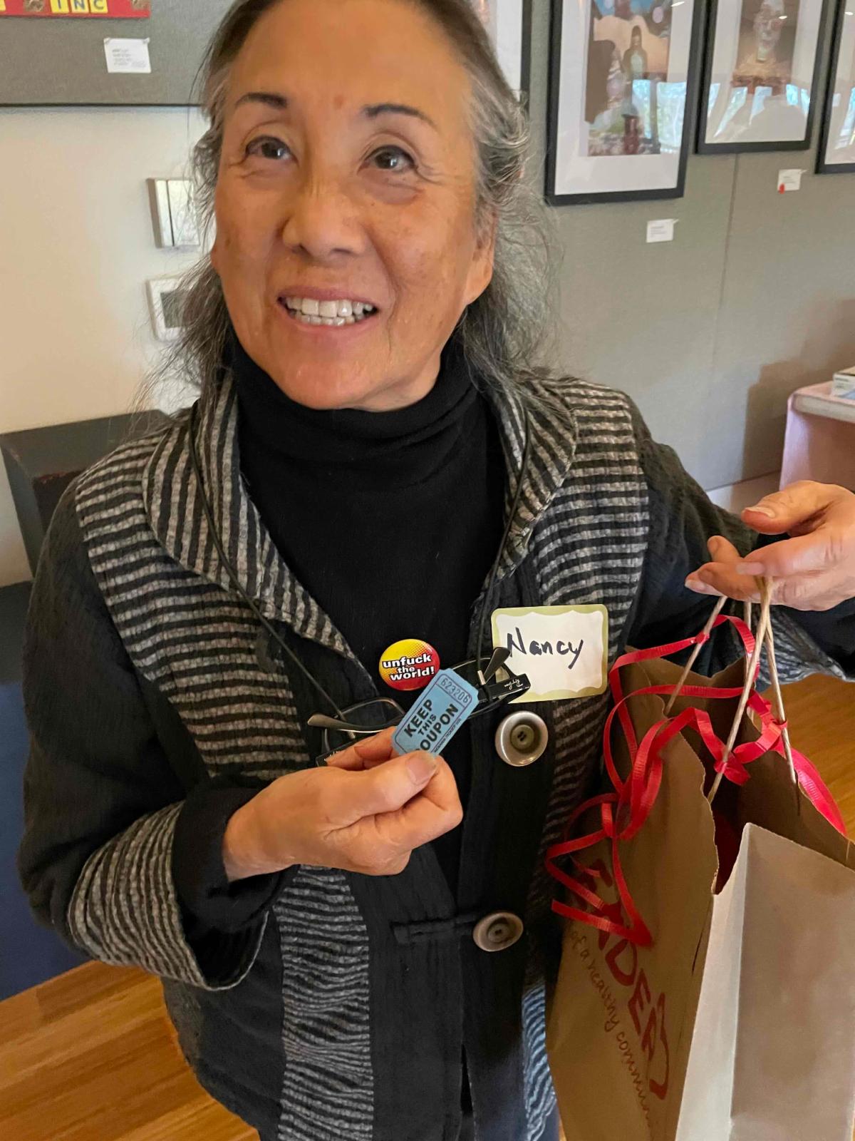 Our November lucky door prize winners, were Nancy Wang who won a smoke detector AND Nancy Schafer who won a beautiful little pine bonsai plant and then kindly gifted the little tree to her friend, Perri Gibbons.