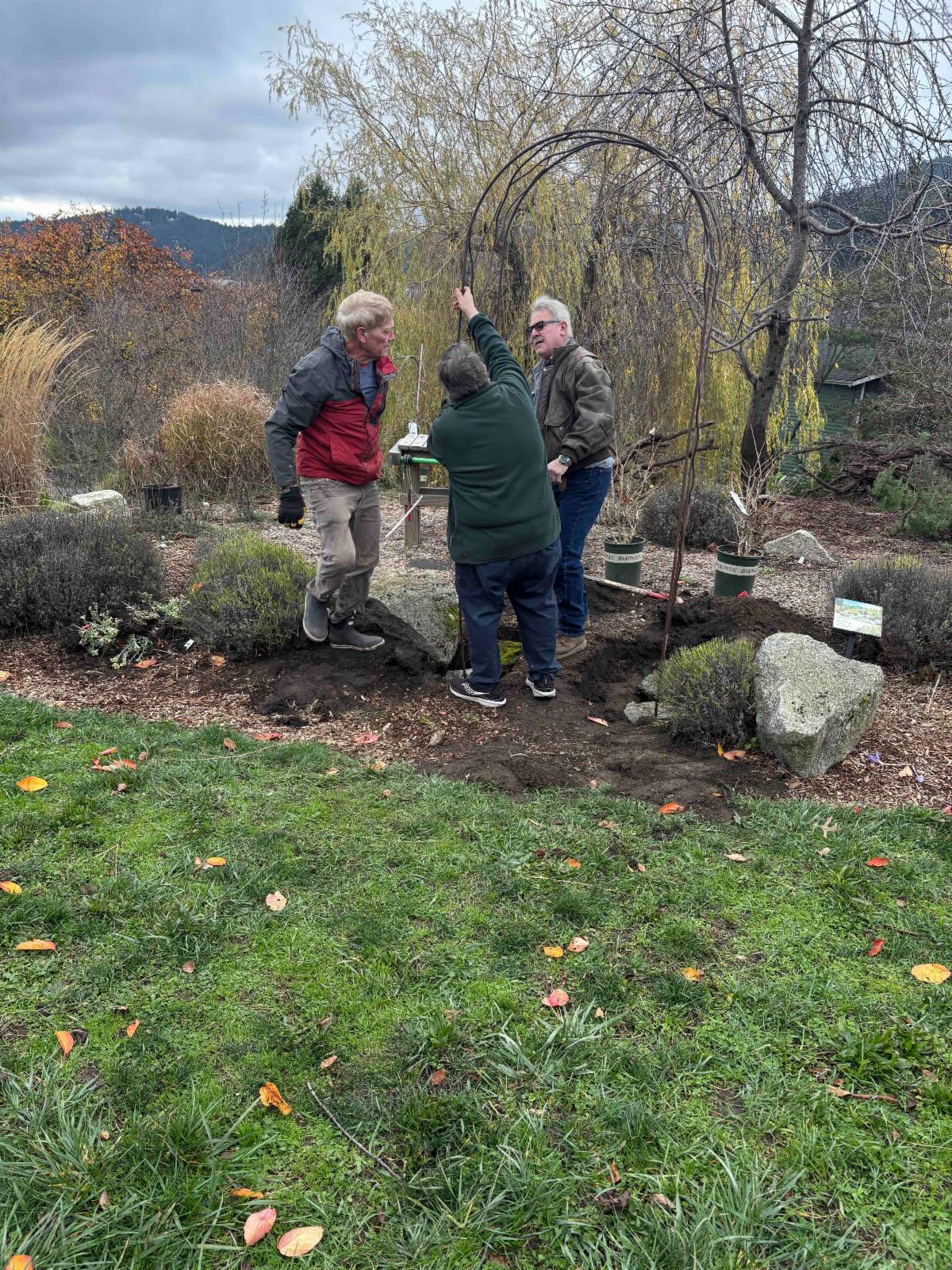 | | Last but not least, hooray for the cold hardy garden library team that planted several trees and shrubs on a cold and rainy day. We removed an over grown juniper, set up an arch and had a lot of fun doing it! Thank you Robin and Allen Sullivan, Laura and Curtis Walker and Frank Gates! More to come! | | | Member Raffle and Meeting Door Prize | | |
