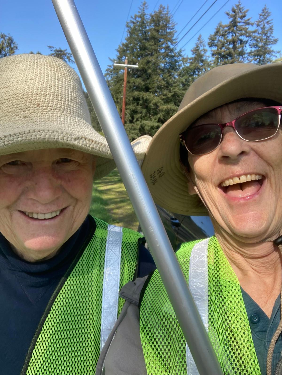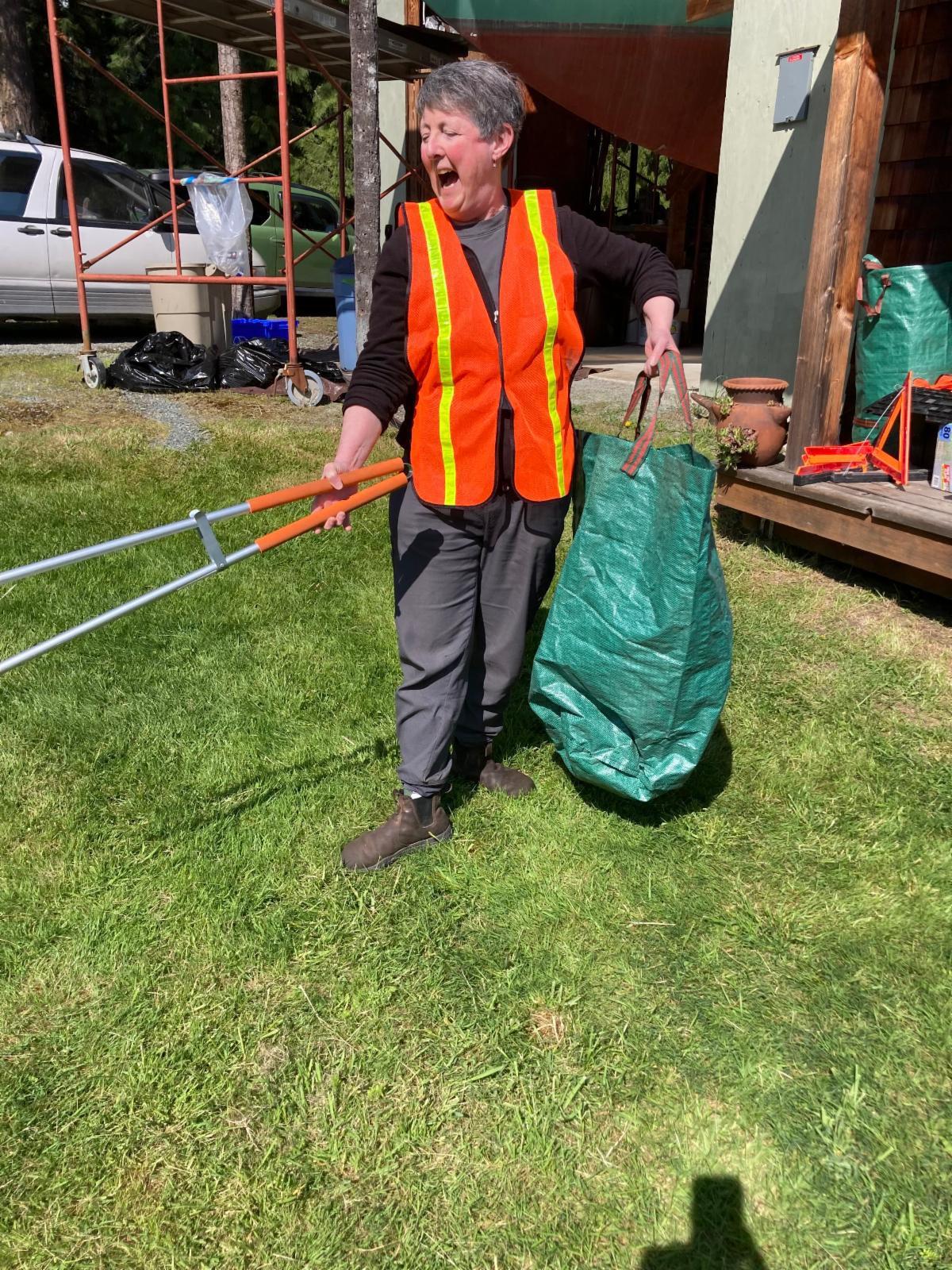 This year, the Great Island Clean-up in April had a record 105 volunteers, many of which were garden club members! As you can see from the pictures, we all had a great time taking care of small communities all over Orcas. It really was a satisfying experience to hunt for trash, some items even buried for years and leave the space a beautiful natural spot. A heartfelt and gigantic thank you goes out to members Nancy Schafer, Ginger Moore, David & Geri Turnoy and Karen Miksch for their leadership, past experience sharing, enthusiasm and magical organization to pull off a fun and engaging day! This picture is SO NANCY! Also, special thanks to Lynn and Steve Emmes who were so generous to offer up the Olga Community Center for the newest group, The ‘Olga Garbage Gardeners’ to meet, be trained and get partnered up.